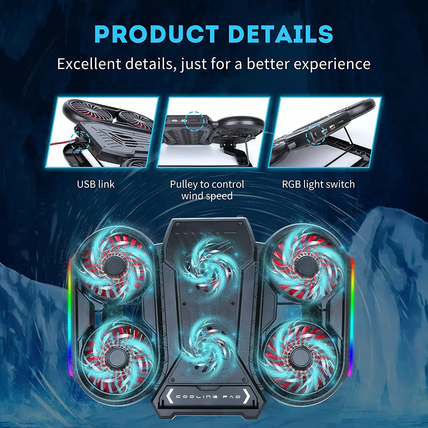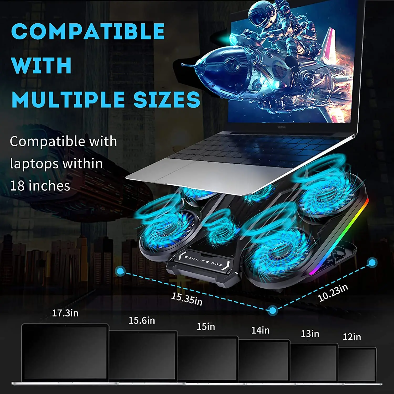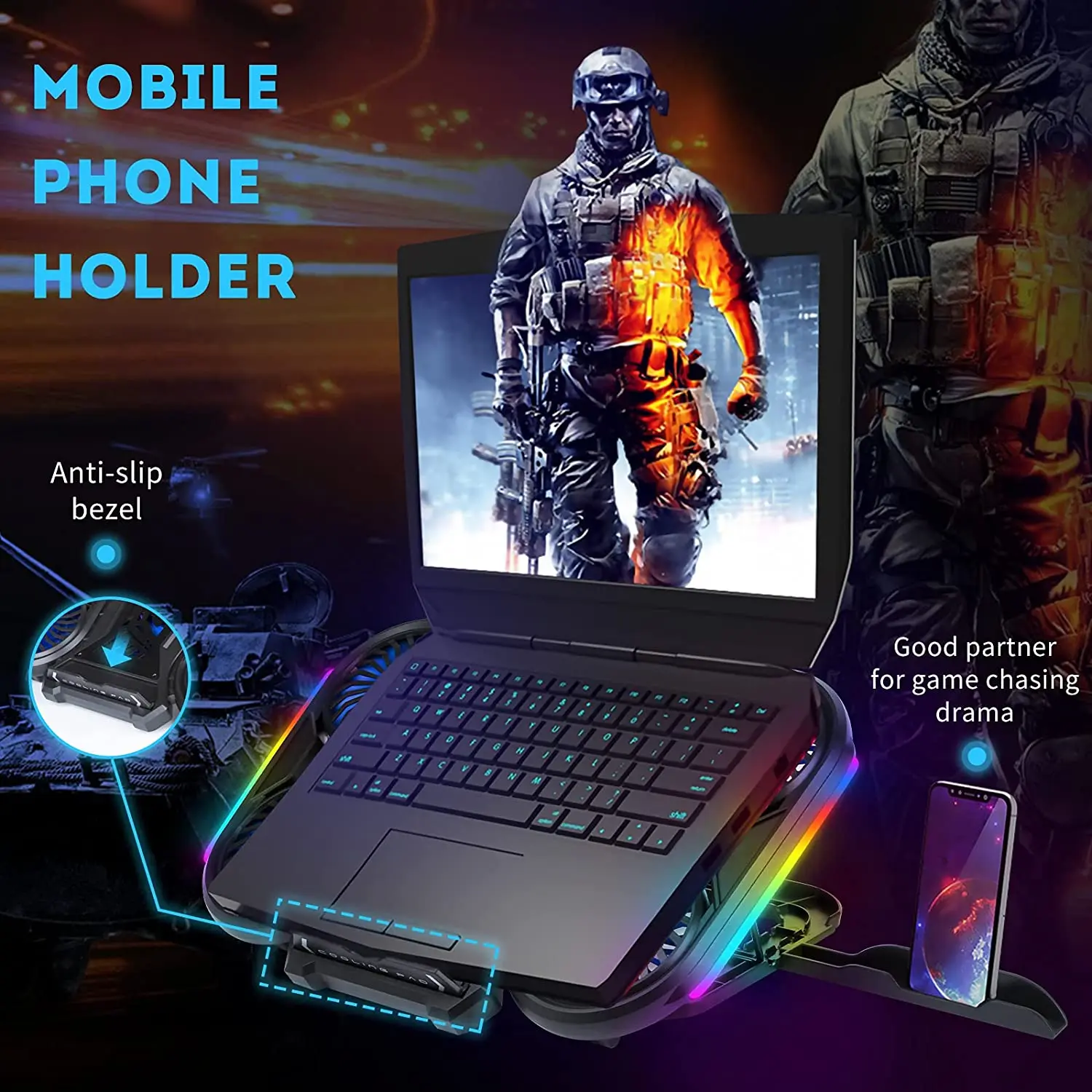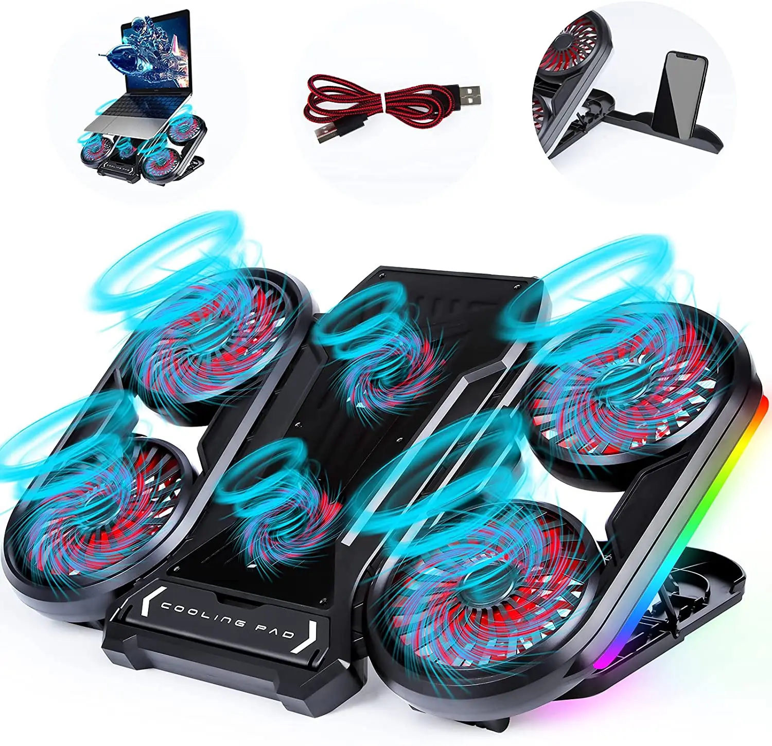 Laptop Cooling Pad with Phone Holder, RGB Gaming